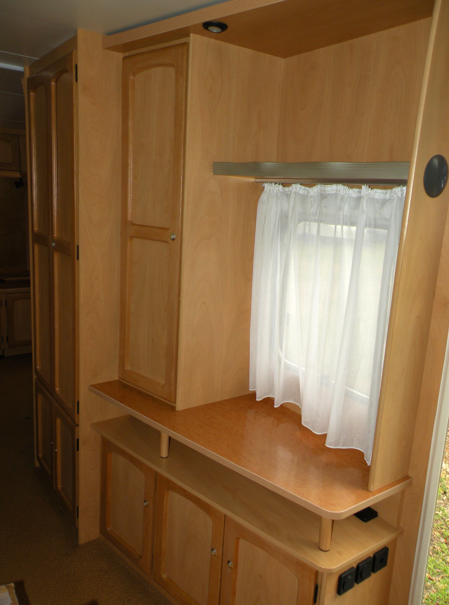 Przyczepa 5 osobowa 2001 r., DMC 1350kg, dł. 6,0m, szer. 2.25m, 2 sypialnie (2os.+3os.); kuchnia, zlewozmywak, lodówka, łazienka: umywalka, brodzik, prysznic, WC-kaseta, ogrzewanie gazowe, podgrzewacz wody, klimatyzator, przedsionek, wymiary spań: 140 x 212cm, 85 x 200cm i 85 x 200cm (po połączeniu 200 x 212cm), stabilizator toru jazdy, rolety i moskitiery, moskitiera w drzwiach wejśc., wtyczka 13.