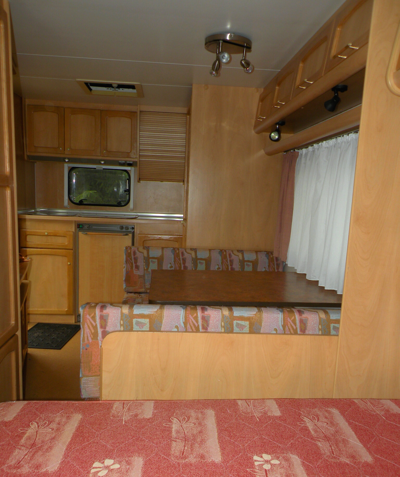 Przyczepa 4-osobowa 2004 r., DMC 1240kg, dł. 4,90m, szer. 2,20m, 2 sypialnie (2os. + 2os.); kuchnia, zlewozmywak, lodówka, łazienka: umywalka, osobno brodzik z prysznicem i WC-kasetą, ogrzewanie gazowe, podgrzewacz wody, przedsionek, wymiary spań: 140 x 212cm, 140 x 195cm; rolety i moskitiery, moskitiera w drzwiach wejściowych, wtyczka 13.